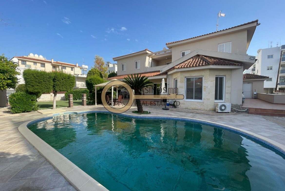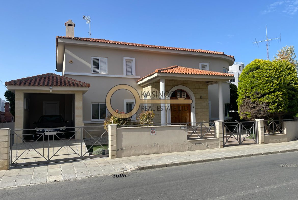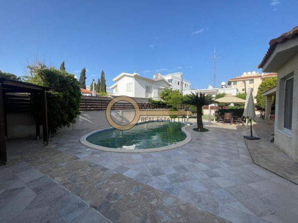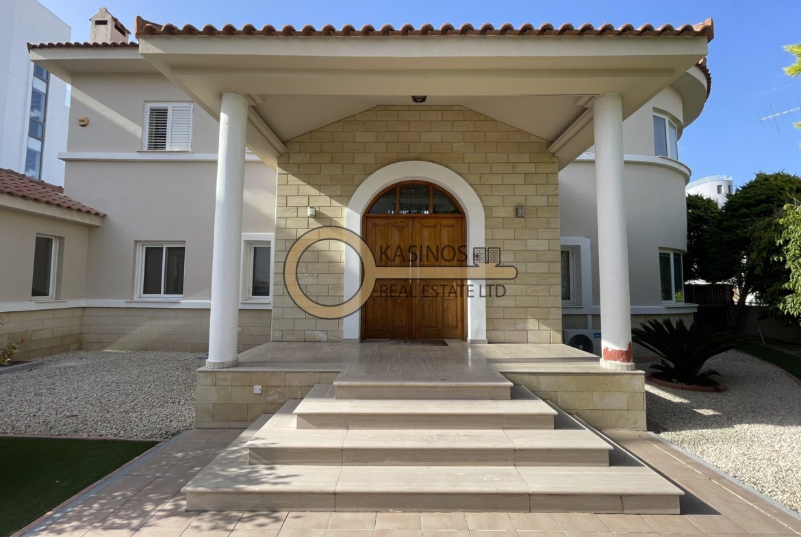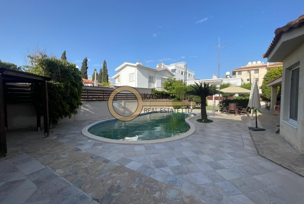 Excellent detached 4-bedroom house with large yard and swimming pool available for rent in the prime location of Engomi, Nicosia, in a quiet residential neighbourhood near the Russian and American Embassies!