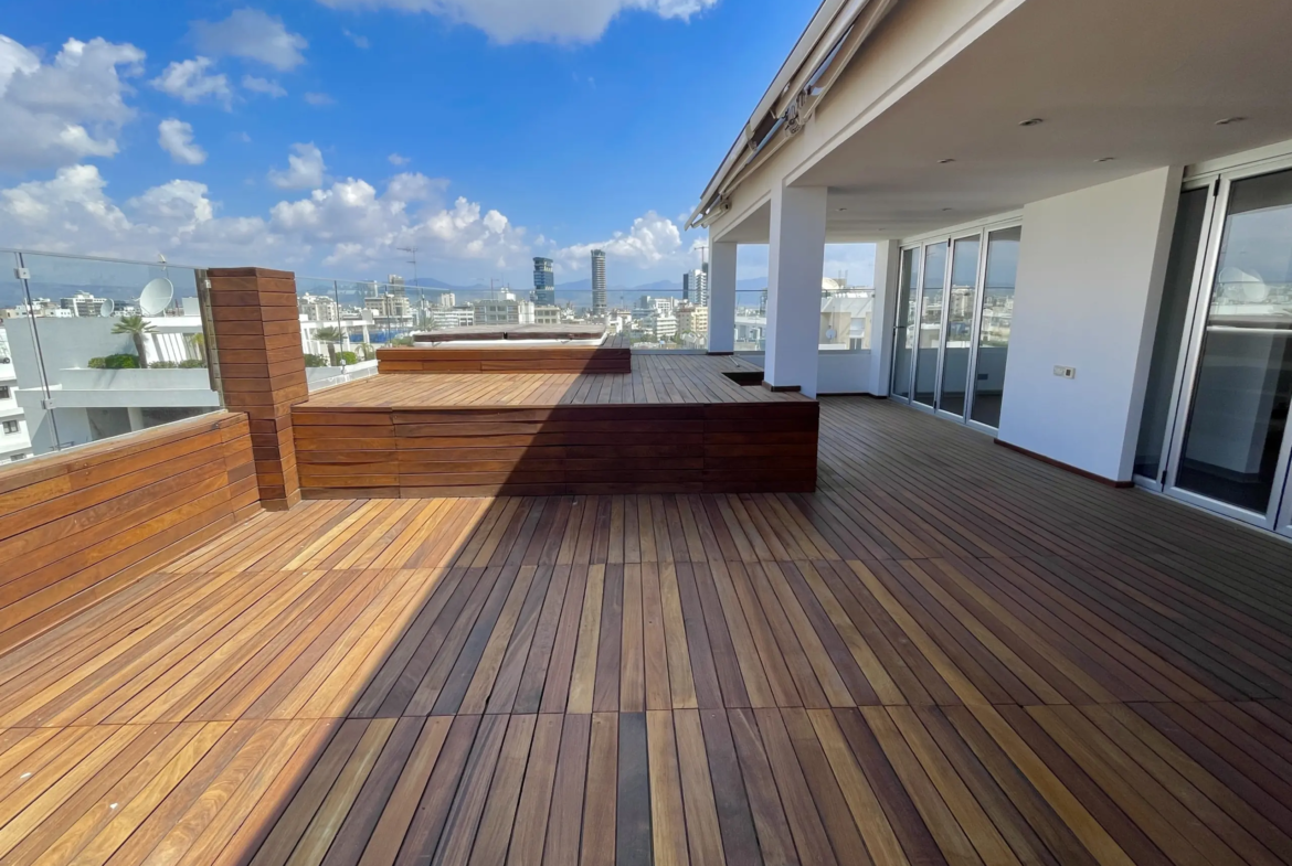 Luxury whole floor penthouse apartment available for sale in Akropoli, Nicosia! This fully renovated apartment is situated on the top floor of a classic 1980’s building, in a very central location of the capital, near Starbucks and KPMG!